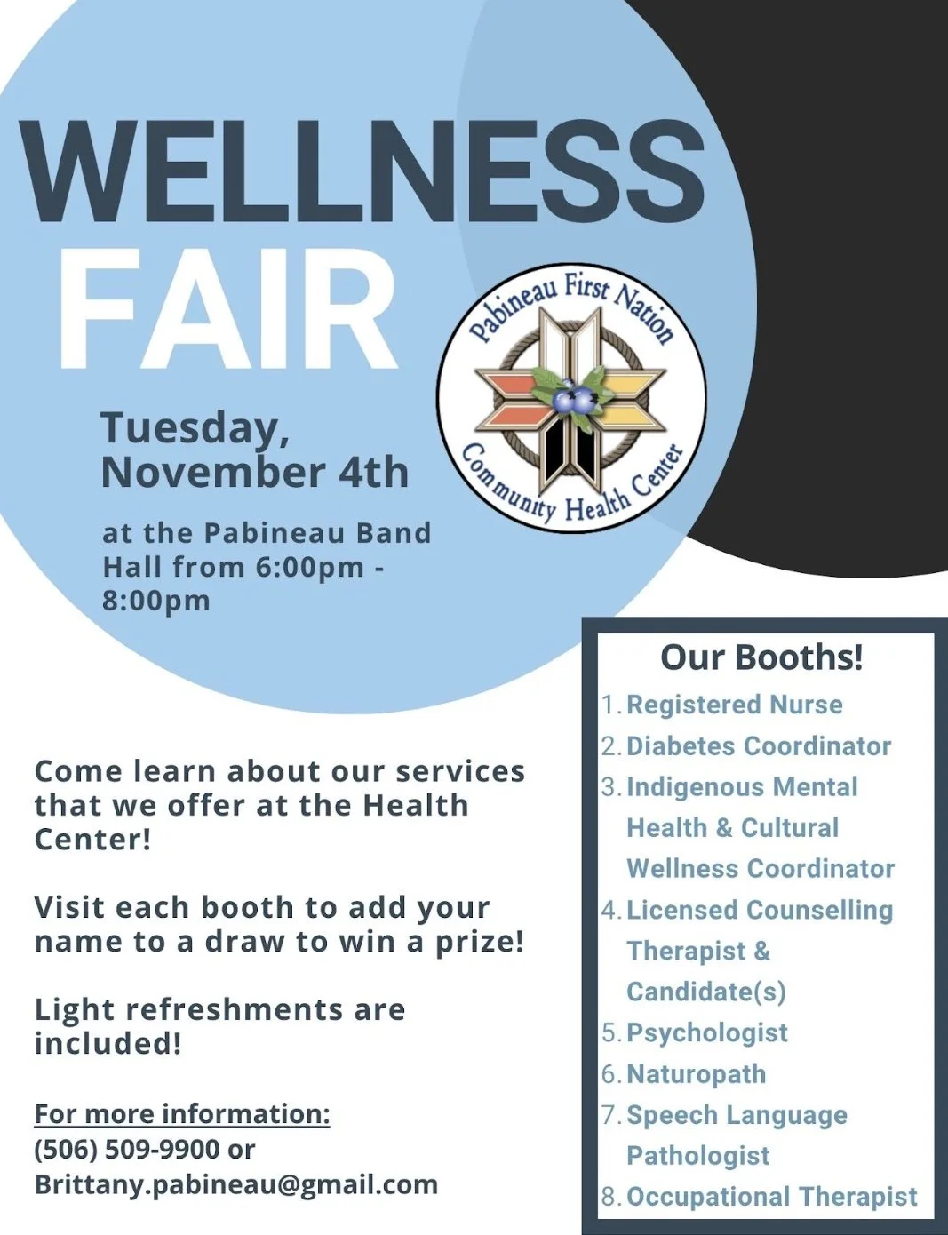 Tuesday, November 4th at the Pabineau Band Hall from 6:00pm - 8:00 pm